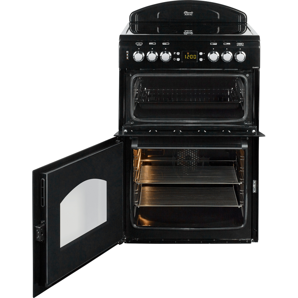 The main fan oven ensures even heat distribution for consistent cooking results, while the top conventional oven with integrated grill provides additional flexibility. With its classic design and modern features, the CLA60CE is ideal for both everyday meals and special occasions.